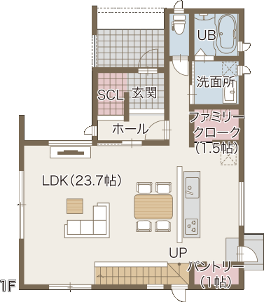 23.5帖もあるテクノストラクチャーだからできる広めのLDKが目を引きます。