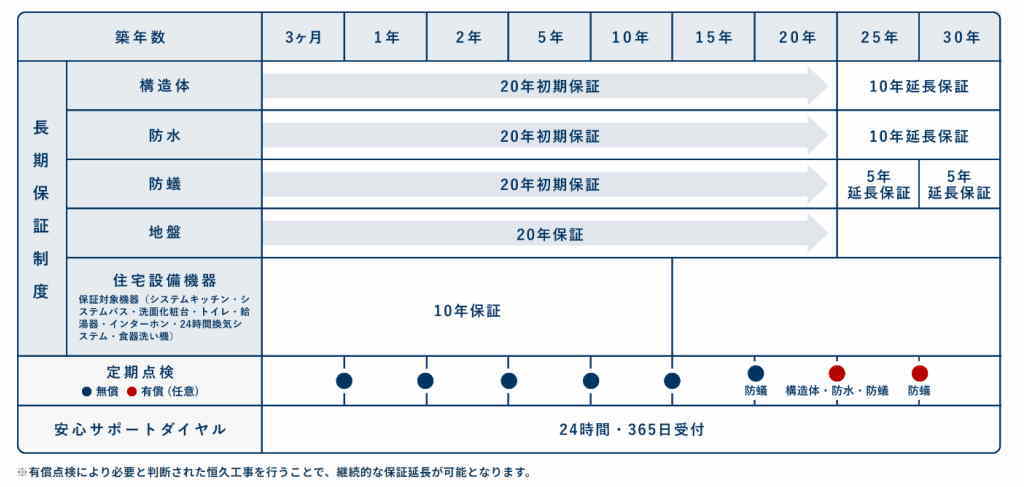 ローコスト住宅では初期保証10年という会社も多いので、初期保証20年は悪くありませんが、あわよくば30年ついていれば文句なしでした。