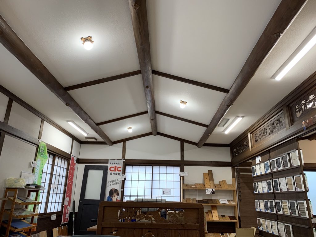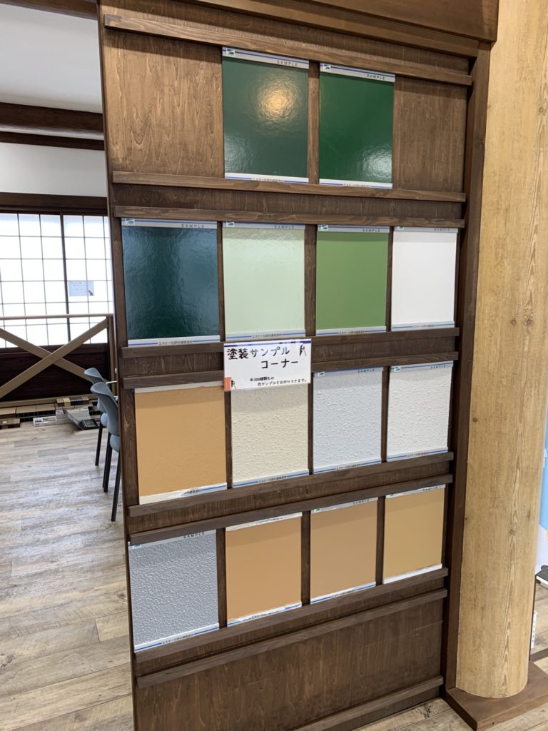 大成住宅の2階は打ち合わせスペースになっており、屋根材や外壁材、室内のフローリングやドアなどの建具が数多く展示されているので、ゆっくりじっくりマイホームの打ち合わせができます。
